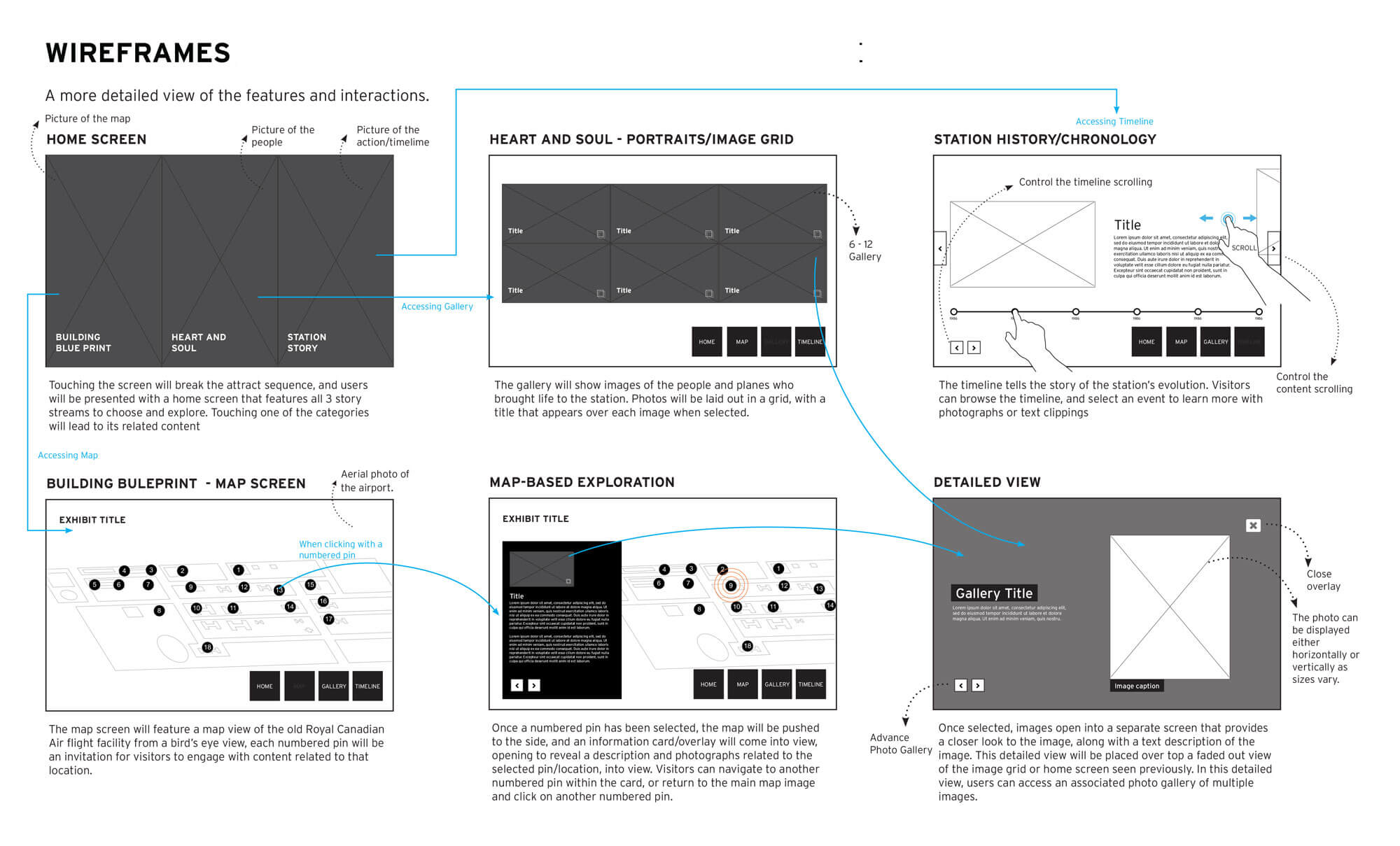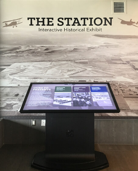 The application is displayed in a touch 55” drafting style 4K screen on a stand, developed with Unity. The goal of the experience is to explore, discover, and learn about the airport’s unique history to uncover and share the airport’s evolution, significant events, and the legacy it built.