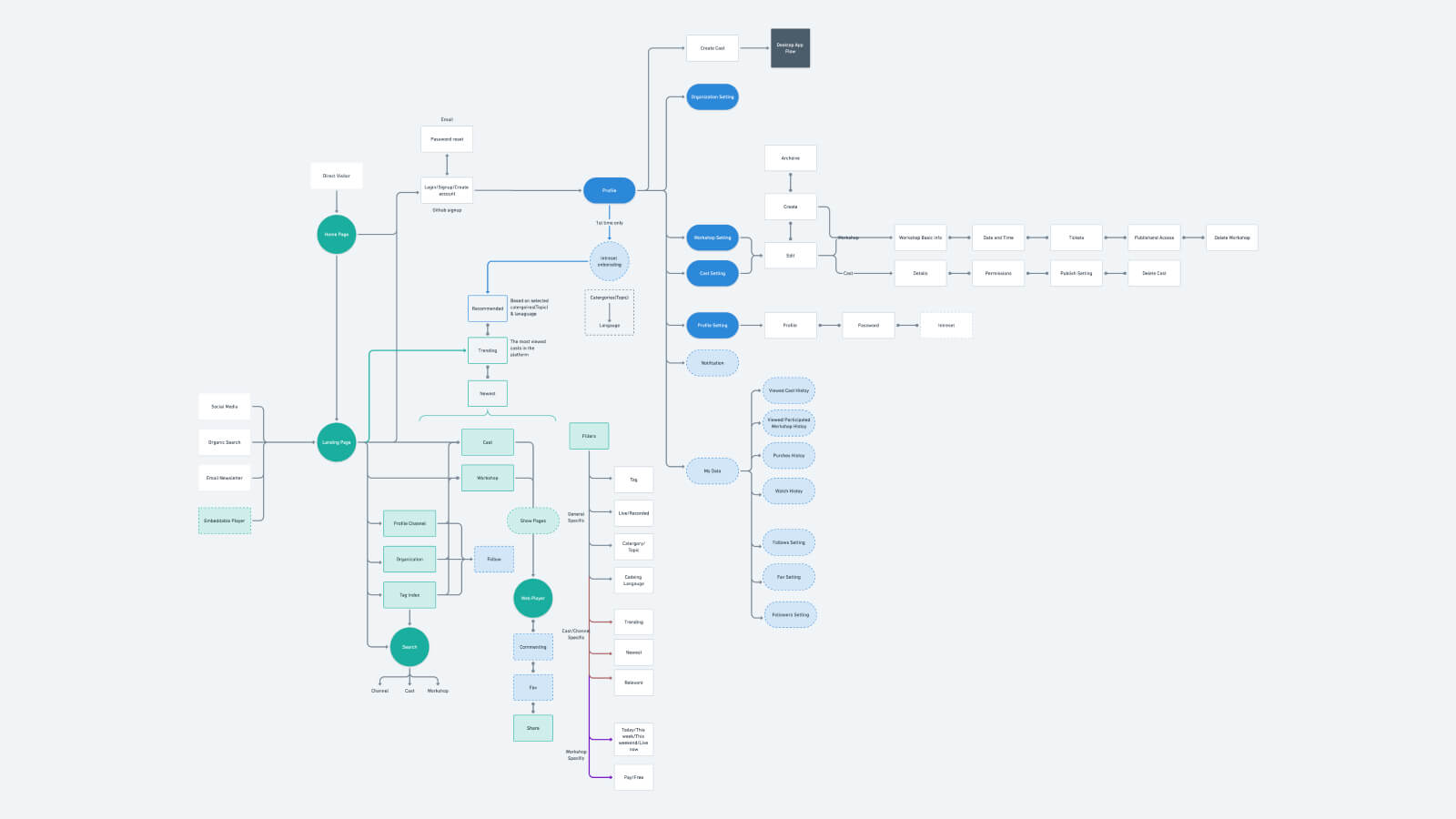 After the analysis and initial research, I mapped out what a user could do with a streaming and recording app. I listed the steps and tasks for the creator’s content creation process. I would ask questions like, “What would be the first thing that prompts our users?”