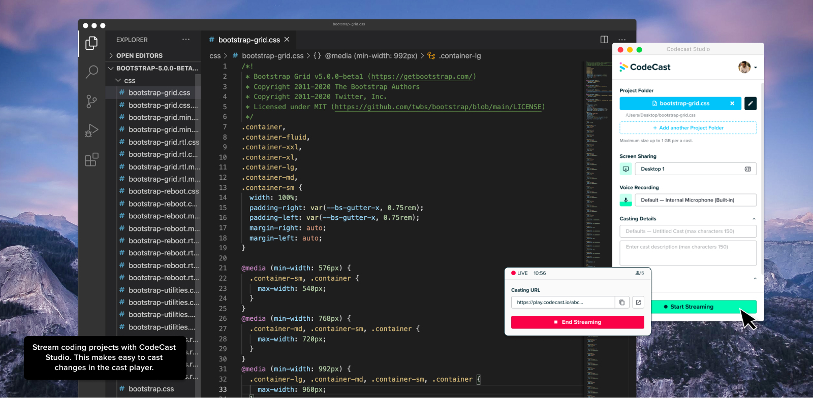 CodeCast - Developer Tools: Streaming Platform with live Code Editor