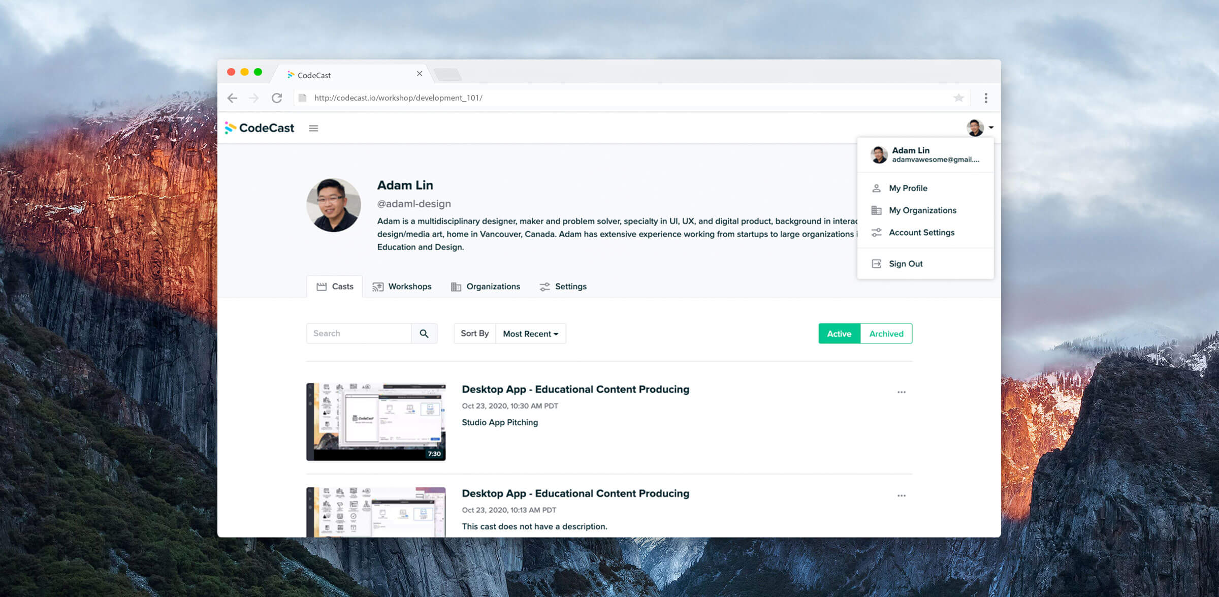 Start by getting direction from my manager and CEO. The tasks were broken down into phases. We started with CodeCast Studio and Cast Player with two months of the design cycle and another two months for development. The Community Portal is an ongoing project, still a work in progress.