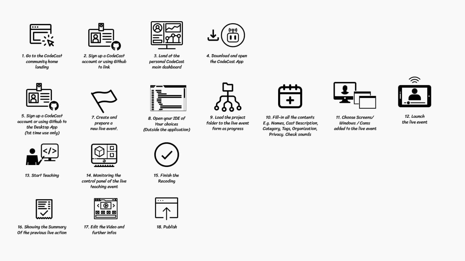 We would like to build up the CodeCast community; help developers share their ideas, ask and answer questions; teach each other; host workshops or use it as a documentation tool for their development processes.