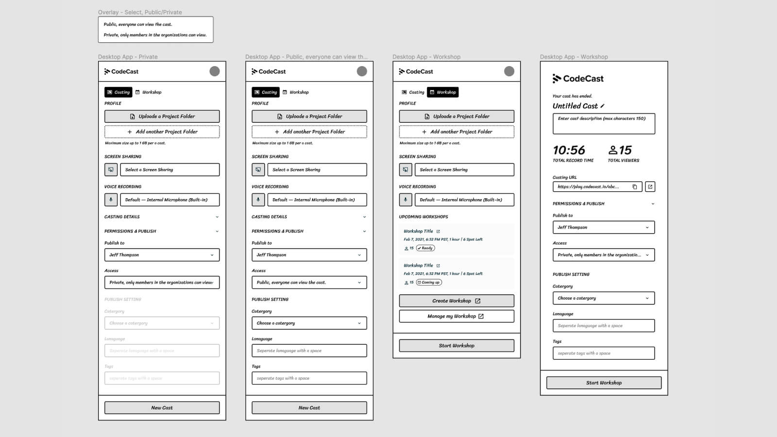With the usability testing feedback, the final design was added additional insights that my manager and I were never thought of. The following are the final deliverables for development for CodeCast Studio, Code Recorder + CodeCast Cast Player.