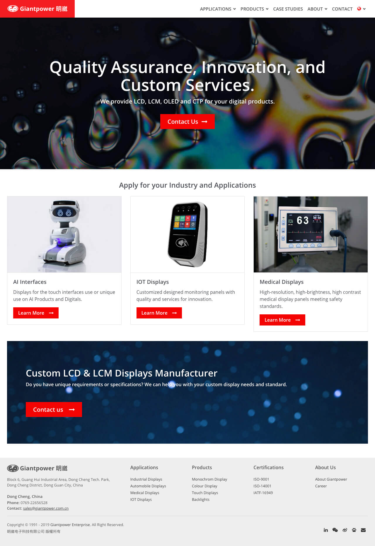The redesign reflects Giantpower’s objective and directions that they would take, making them a problem solver, not just a display manufacturer, but a product development service partner.