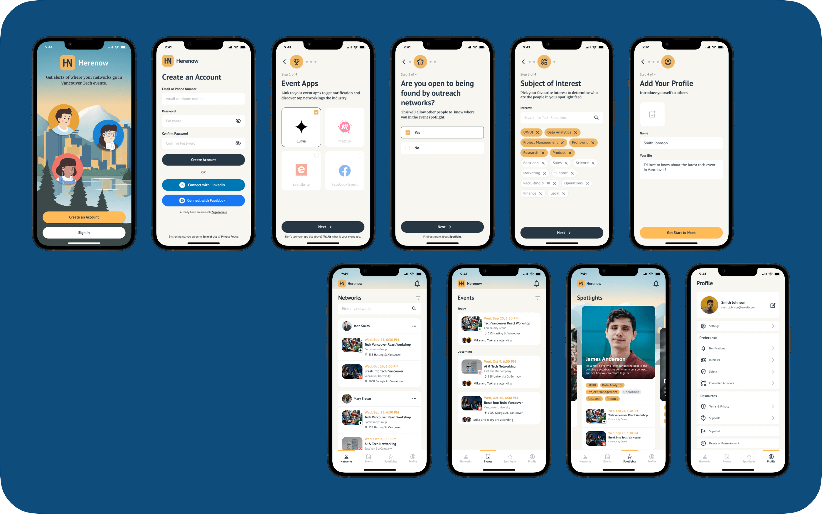 As a user, it is hard to track all the events listed, filtered through events by their professional network in the town. As event hosts, they would love to promote and establish their presence in the local community to gain their influence and presence.