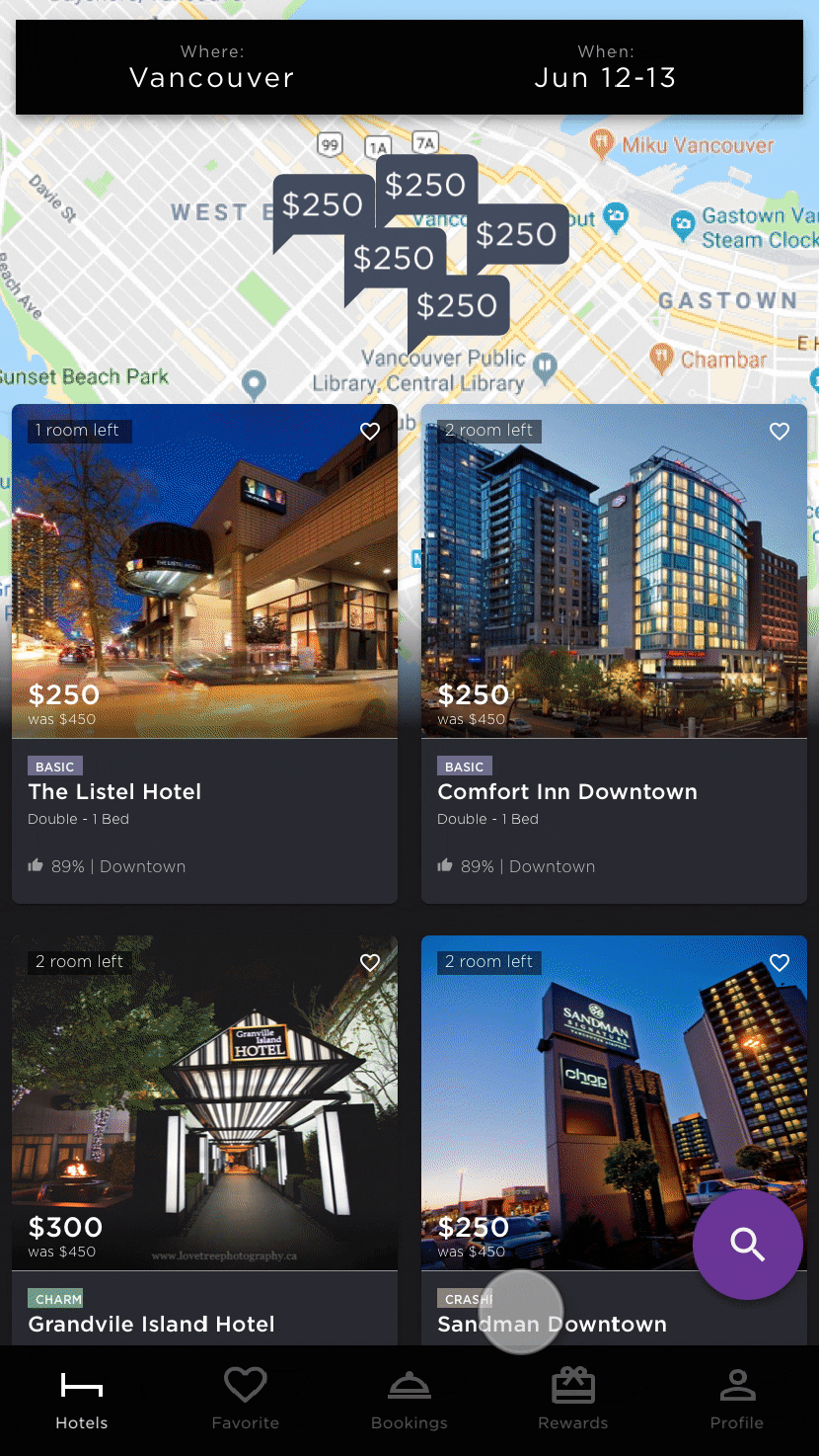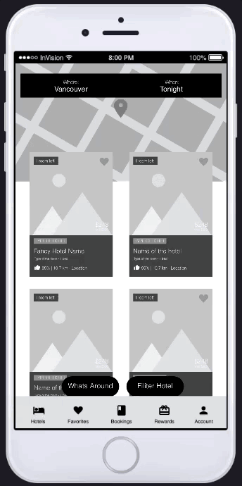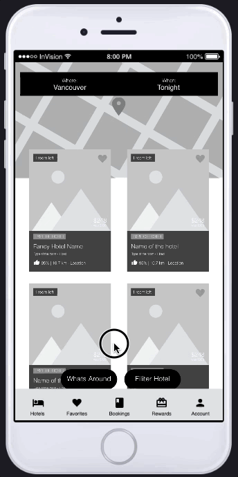 Prototype showing Hotel Finder Interaction Design Demo