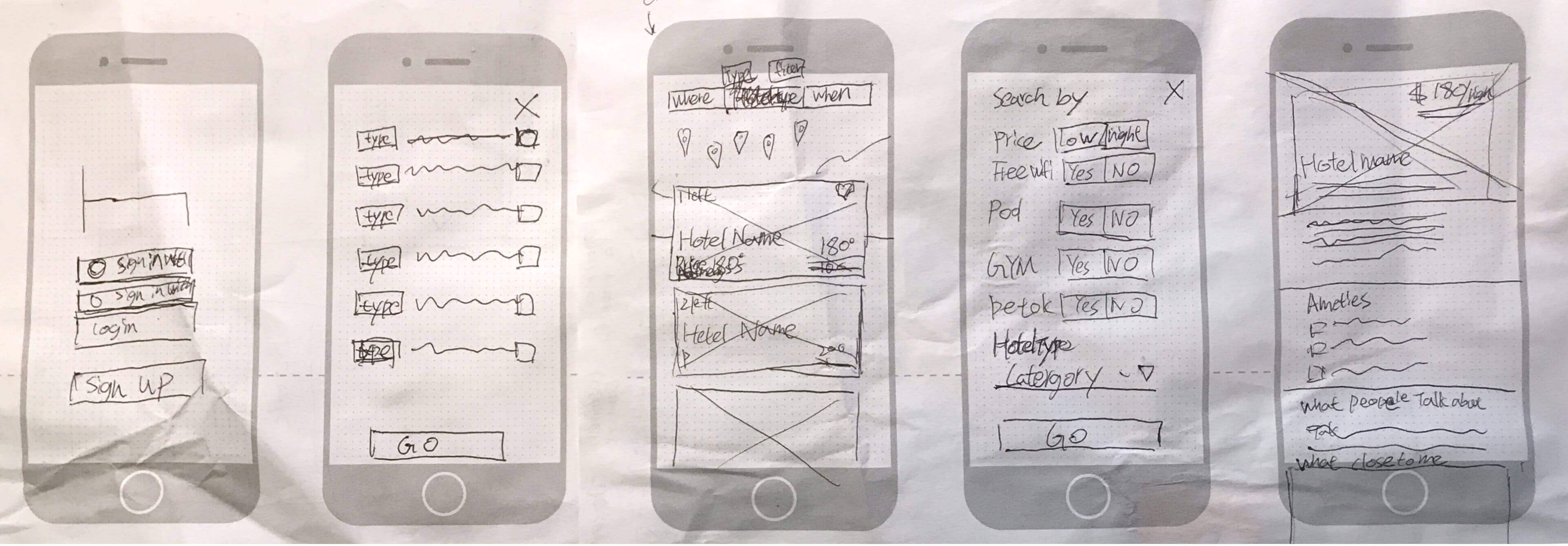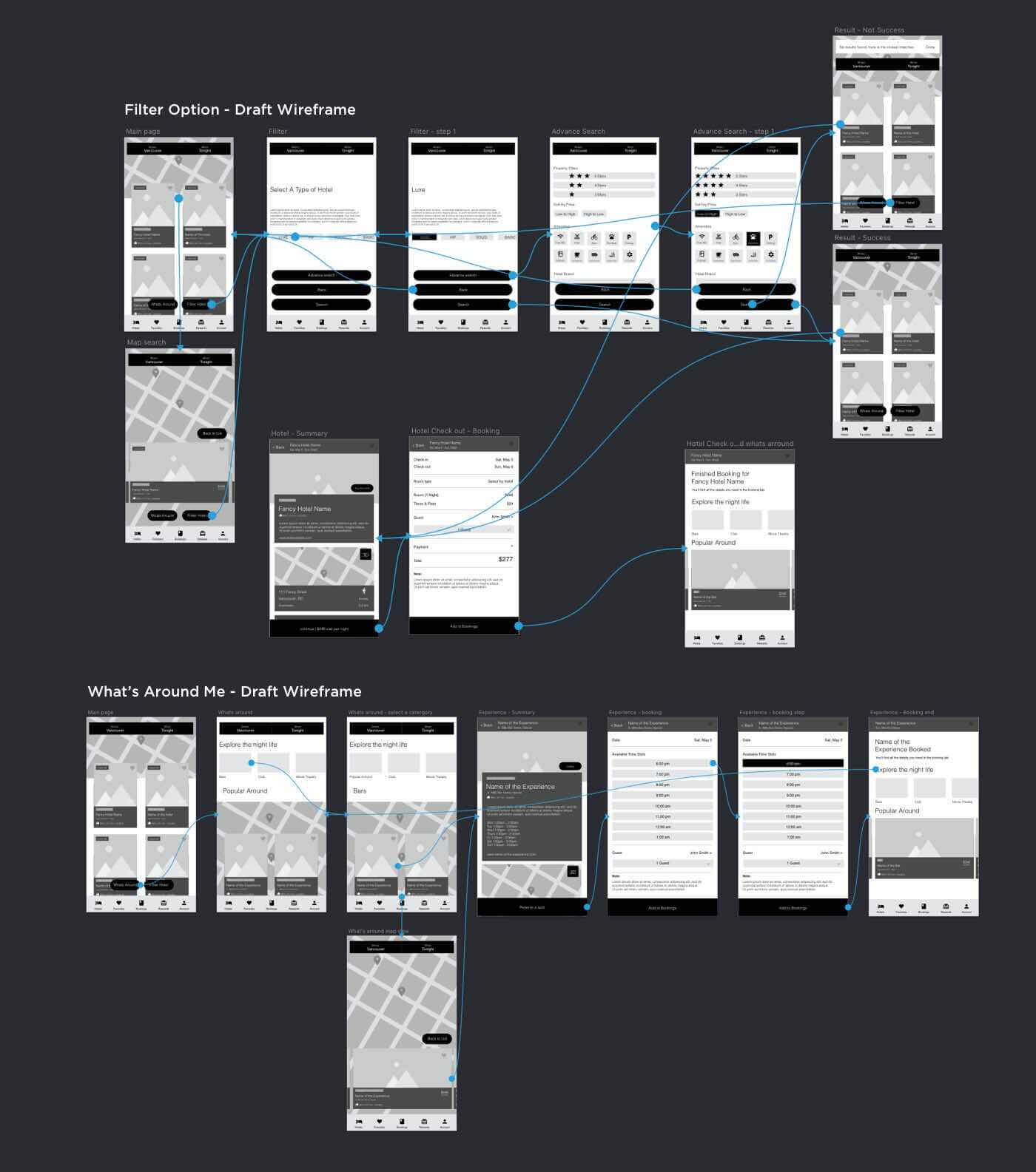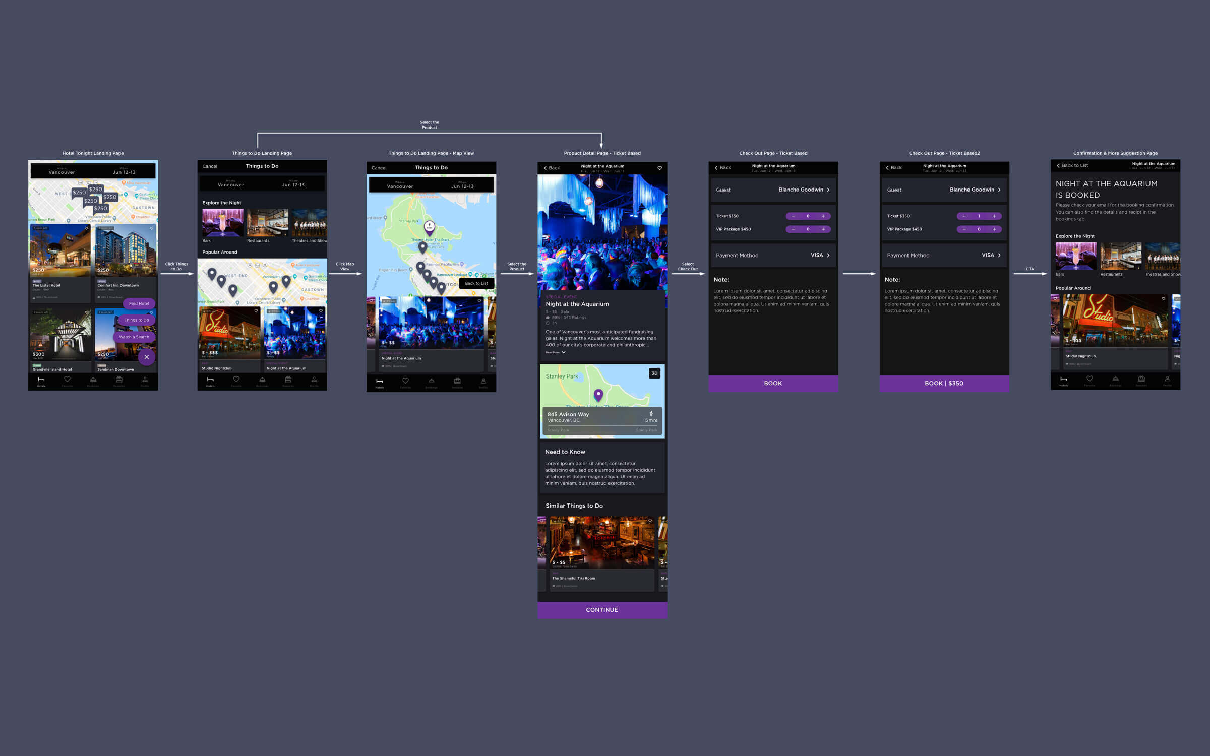 Instead re-defined the whole new app flow, I looked up the HotelTonight's existing IA to see if the new proposed functions could integrate to the initial app's system. I looked the user flow of proposed functions anticipating what might be needed in the UI.