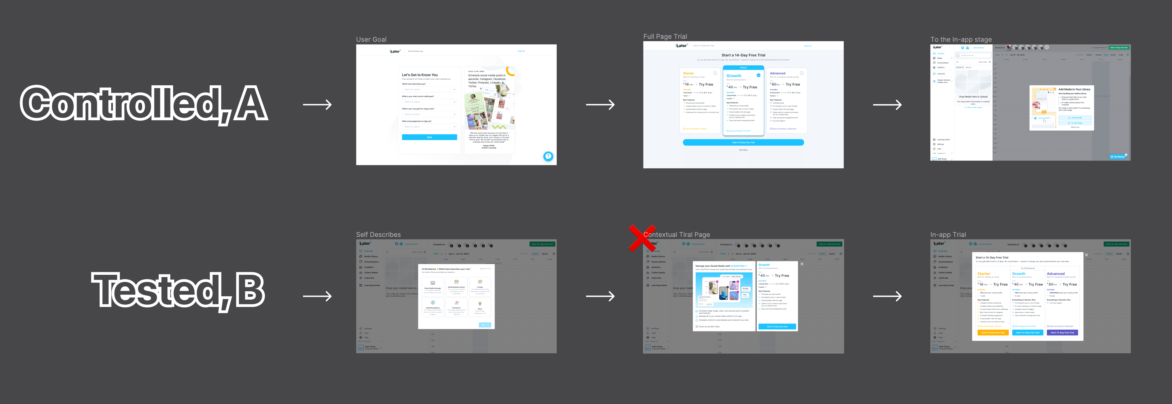 In the previous test, the team made a change to remove the social connection step. The old goal was to drive more users to adopt the application quickly. However, those users were proven to be not the Later's best users.