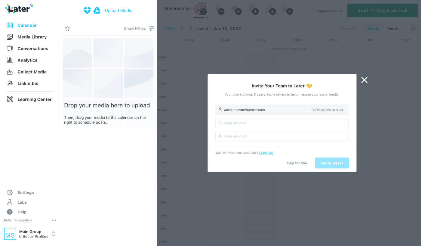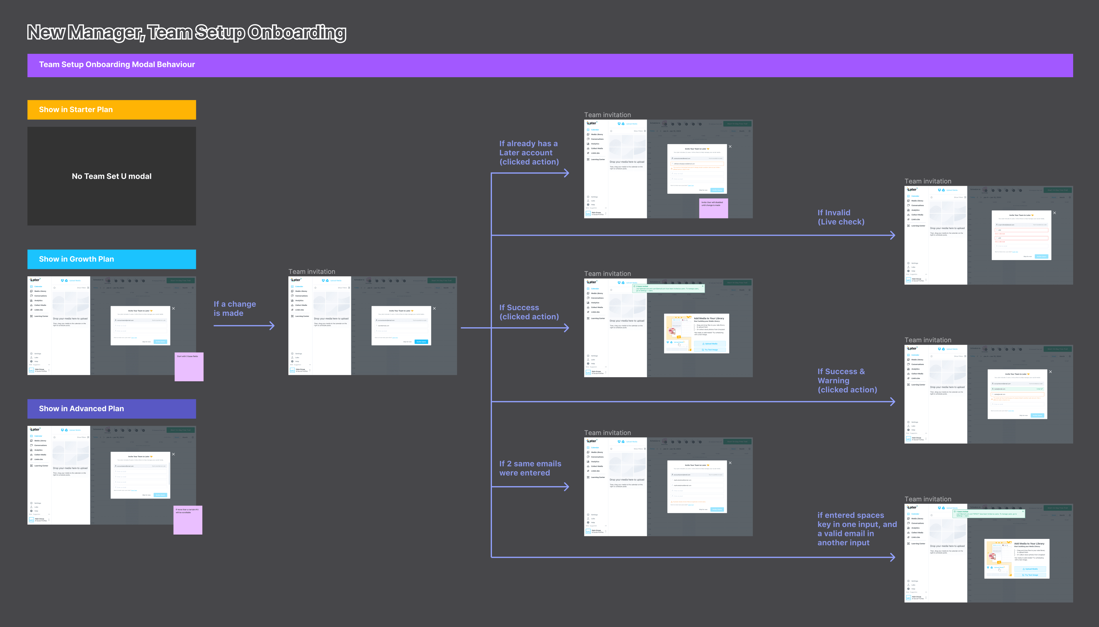 The plan is to create an invitation step during onboarding to attract higher-end markets. This ensures Later's users have full functionality and engagement. The function for team invite was not optimized well before.